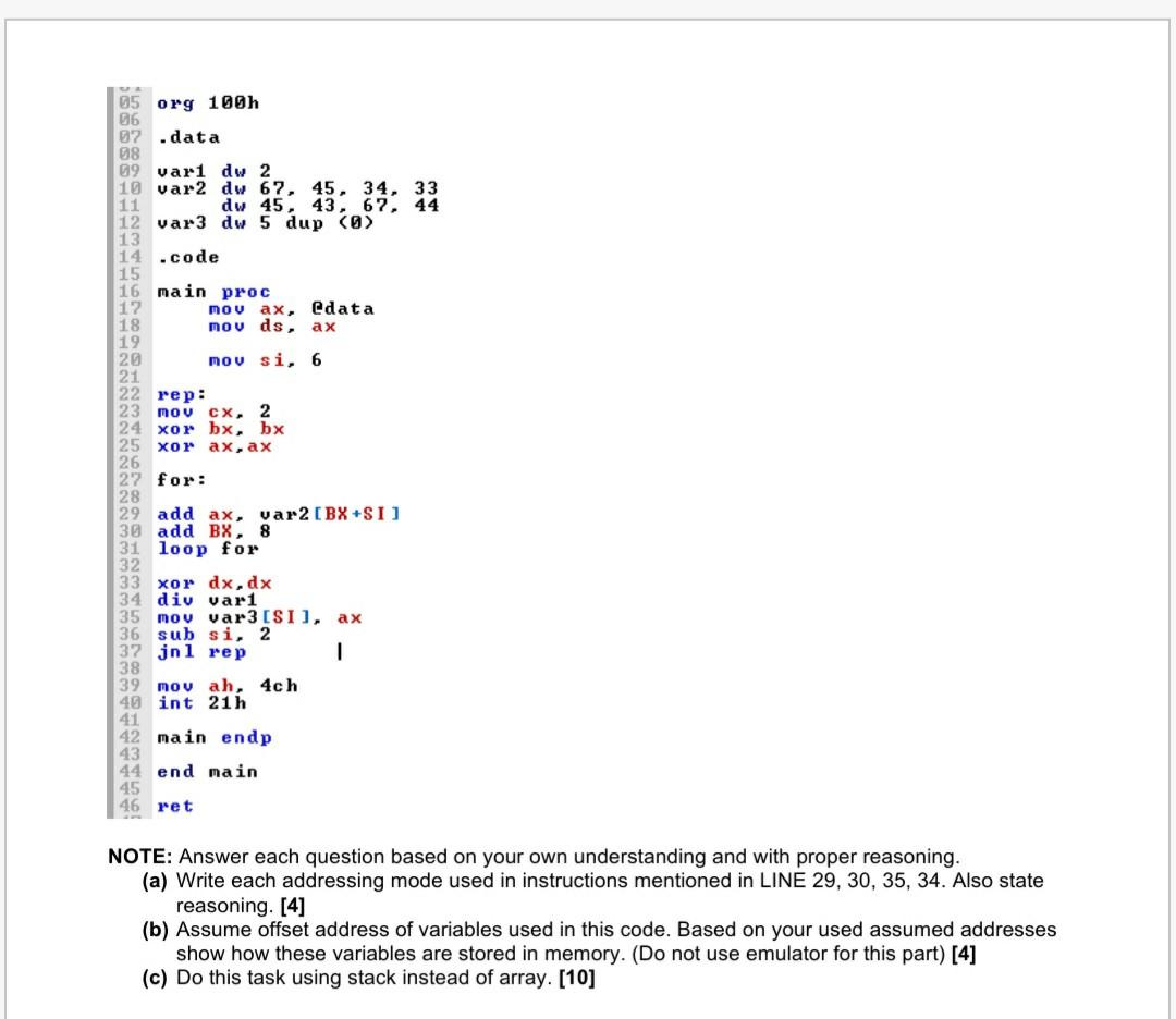 Solved 05 Org 100h 06 07 Data 08 09 Vart Dw 2 10 Var2 Dw Chegg Com