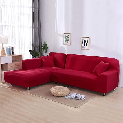 Volwco Copridivano A Forma Di L 2 Pezzi In Tinta Unita Per Divano A 3 Posti Con 16 Bastoncini Di Spugna In Tessuto Di Poliestere Elasticizzato Universale Amazon It Casa E Cucina