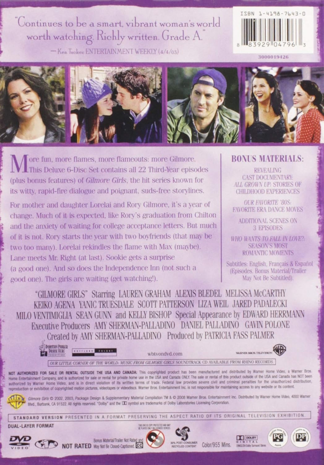 Amazon Com Gilmore Girls Season 3 Lauren Graham Alexis Bledel Melissa Mccarthy Keiko Agena Yanic Truesdale Scott Patterson Liza Weil Jared Padalecki Milo Ventimiglia Sean Gunn Kelly Bishop Edward Herrmann Liz Torres Amy