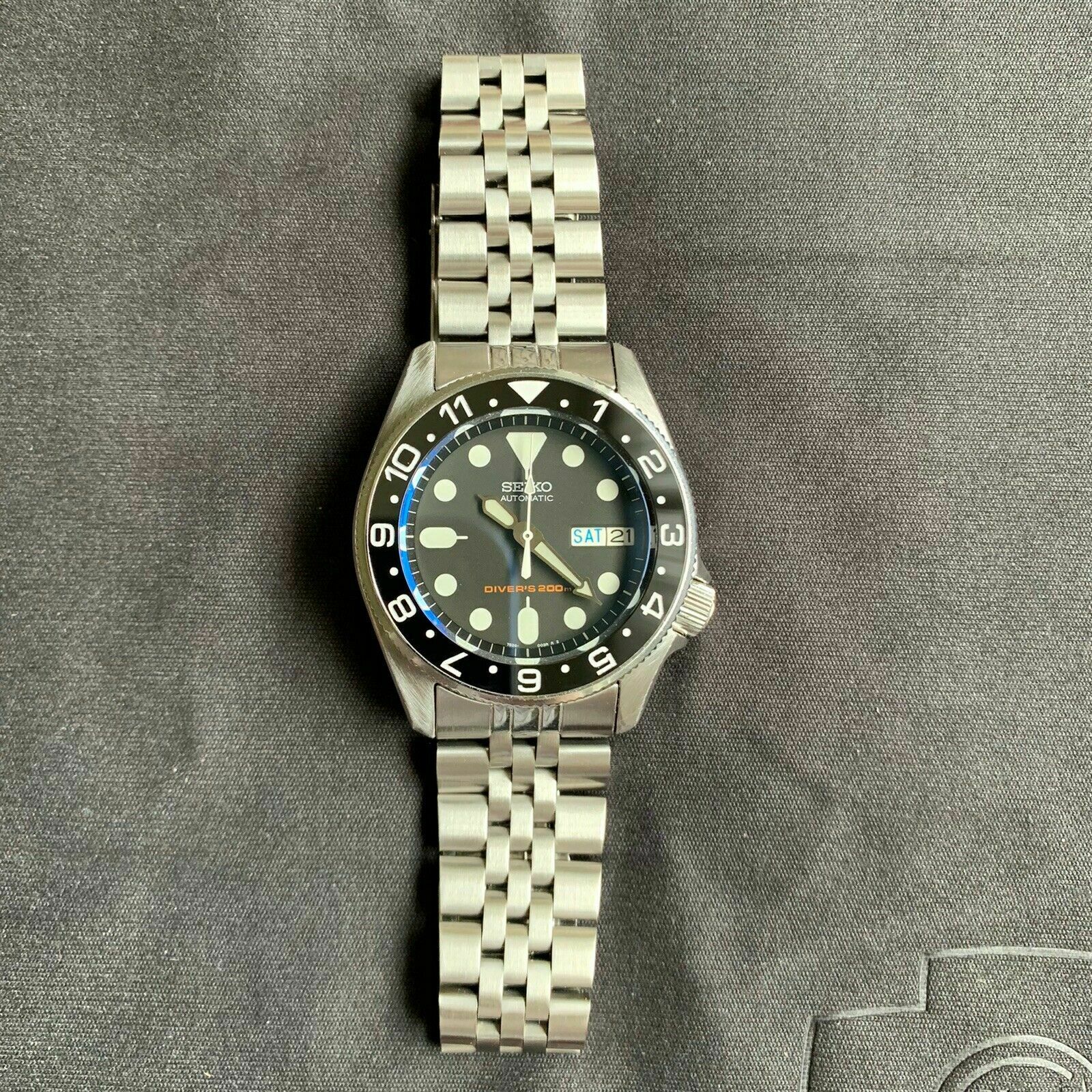Seiko Midsize 38mm Automatic Diver 200m Dive Watch Day Date Black Dial Steel 542018096