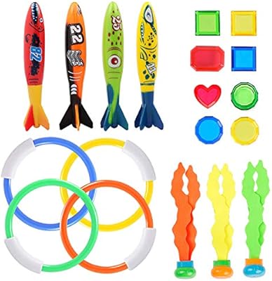 Underwater Swimming Diving Pool Toys Fun Dive Training Toy 19 Pcs With 4 Dive Ring 4