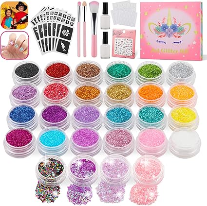 Jojoin Kit Tattoo Temporanei 28 Colori Diversi Kit Di Tatuaggi Glitterati Con 4 Speciali Glitter Pentagonali 5 Adesivi Unghie 137 Stencils Glitter Per Disegni Per Bambini Ragazzi Ed Adulti Amazon It Bellezza