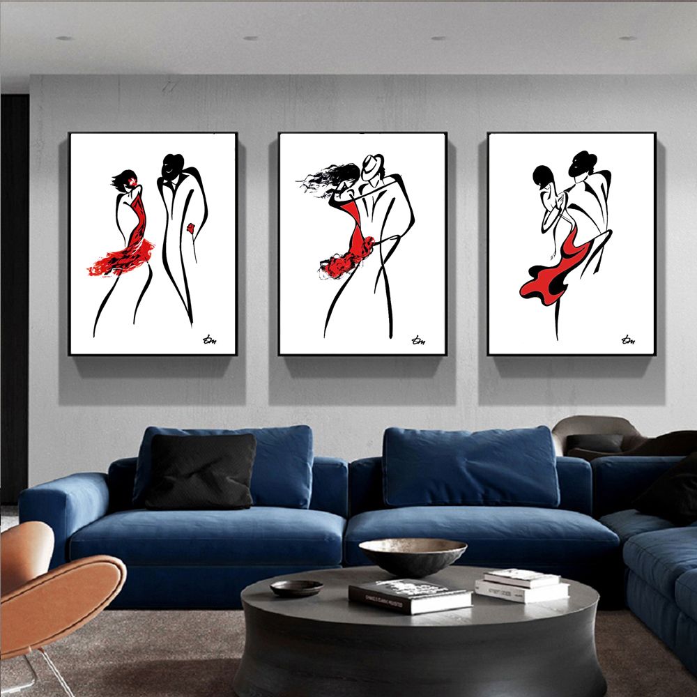 Acquista Set Minimalista Astratto Disegno A Linee Coppia Danza Arte Pittura Nero Bianco Rosso Wall Art Dance Poster Soggiorno Camera Da Letto A 11 52 Dal World View Dhgate Com