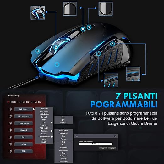 Victsing Mouse Da Gioco Con Filo 7200 Dpi Gaming Mouse Programmabile 7 Pulsanti 5 Dpi Regolabili Colore A Scelta Per Pc Computer Portatile Gamer Ufficio Nero Amazon It Informatica