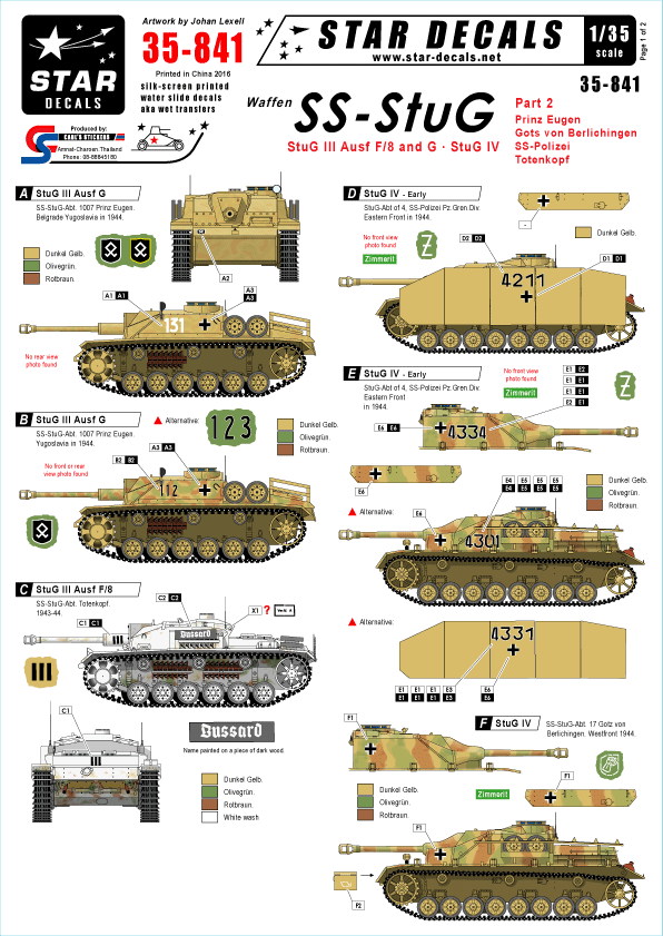 Star Decals 35842 Waffen Ss Stug 1 Stug Iii Ausf C Ausf Decals 1 35 The Largest Choice With 1001hobbies Co Uk