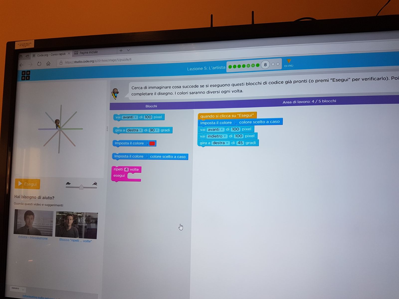 Code Org I Blocchi E Spiegazioni Per Ottenere L Attestato Dell Artista Scuola E Tecnologia