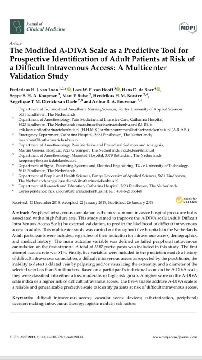 Hans Donald De Boer On Twitter The Modified A Diva Scale Important Multicenter Validation Study On Prospective Identification Of Adult Patients At Risk For Difficult Intravenous Access Collaboration Between Catharinazkh Maasstadzknhuis