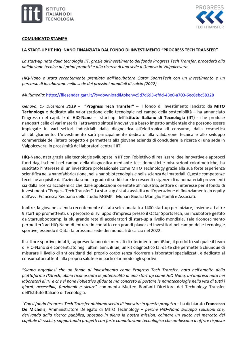 Mito Technology On Twitter E Con Grande Piacere Che Annunciamo L Investimento Di Progress Tech Transfer In Hiqnano Una Start Up Dell Iitalk Che Produce Nanoparticelle Attraverso Sintesi Innovative A Basso Impatto