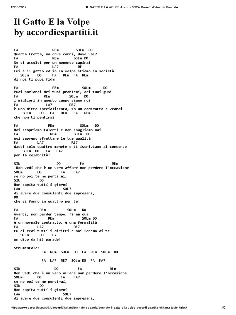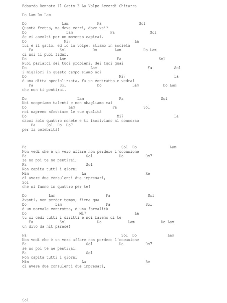 Chord Il Gatto E La Volpe Edoardo Bennato Tab Song Lyric Sheet Guitar Ukulele Chords Vip