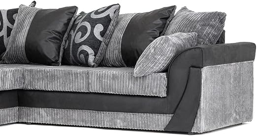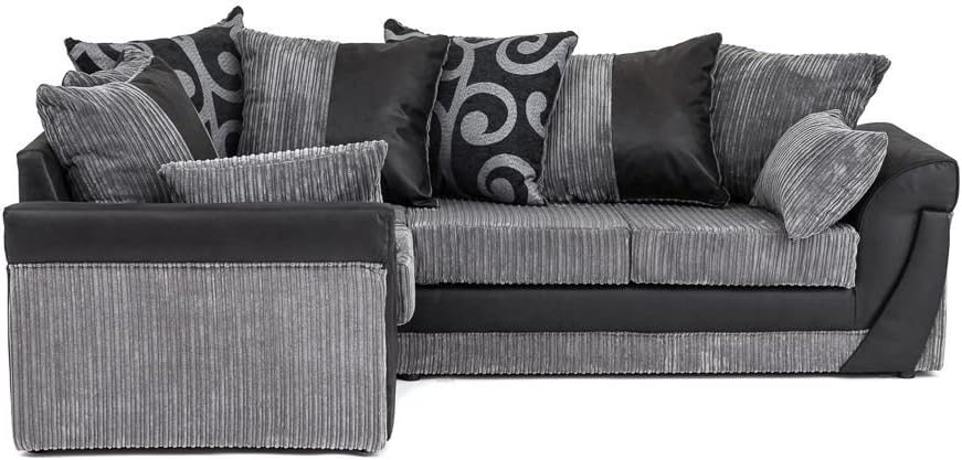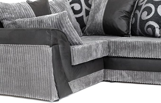 Divano Angolare Di Lusso Colore Nero E Grigio In Finta Pelle Scamosciata E Velluto A Coste Larghe Moderno Black Amazon It Casa E Cucina