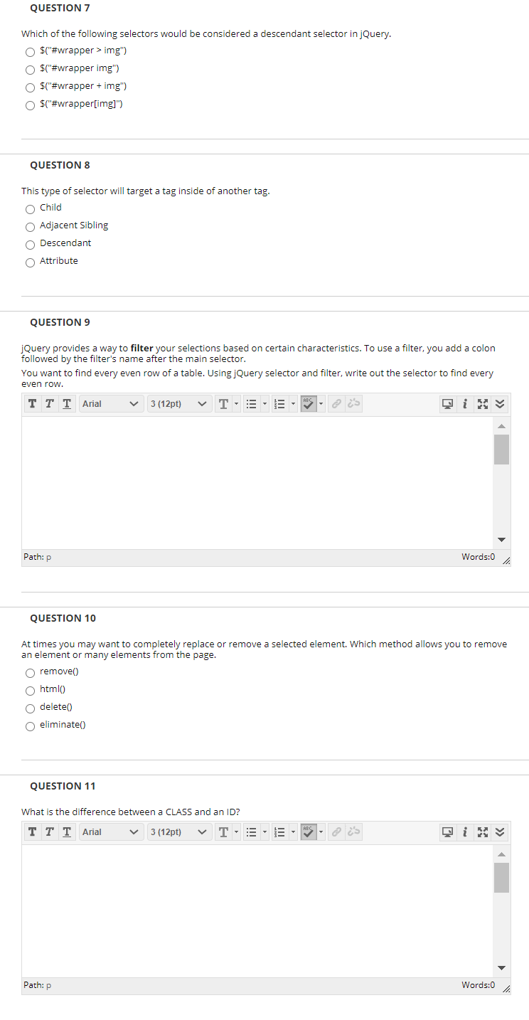 Solved Question 7 Which Of The Following Selectors Would Chegg Com