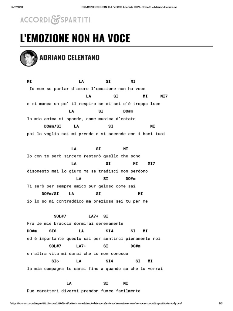 L Emozione Non Ha Voce Lyrics And Music By Adriano Celentano Arranged By Carmelogaldi