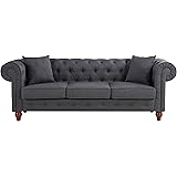Amazon Com Vita Chesterfield Tufted Microfiber Sofa With Scroll Arms Slate Furniture Decor
