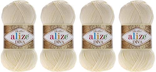 100 Microfiber Acrylic Yarn Alize Diva Silk Effect Thread Crochet Art Lace Craft Lot Of 4 Skeins 400gr 1532yds Color 1 Cream Amazon Sg Toys Games