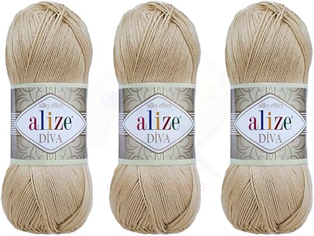 Amazon Com Alize Diva Yarn Hand Knitting Yarn 100 Microfiber Acrylic Yarn Alize Diva Silk Effect Thread Crochet Art Lace Craft Lot Of 3 Skeins 400gr 1314yds Color 368 Camel
