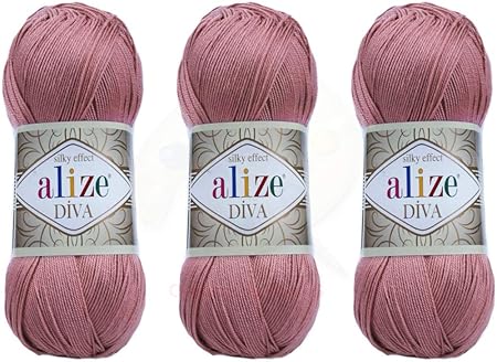Amazon Com Alize Diva Yarn Hand Knitting Yarn 100 Microfiber Acrylic Yarn Alize Diva Silk Effect Thread Crochet Art Lace Craft Lot Of 3 Skeins 400gr 1314yds Color 354 Rose