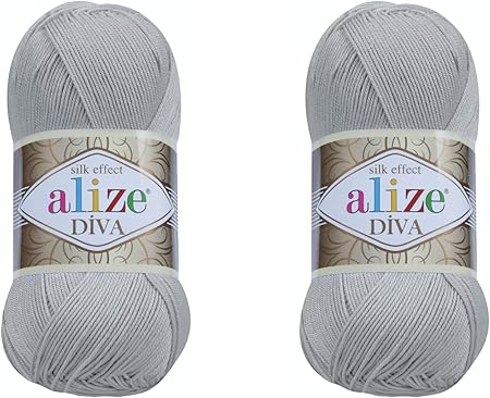 Amazon Com Alize Diva Yarn Hand Knitting Yarn 100 Microfiber Acrylic Yarn Alize Diva Silk Effect Thread Crochet Art Lace Craft Lot Of 2 Skeins 200gr 767 Yds 355 Grey