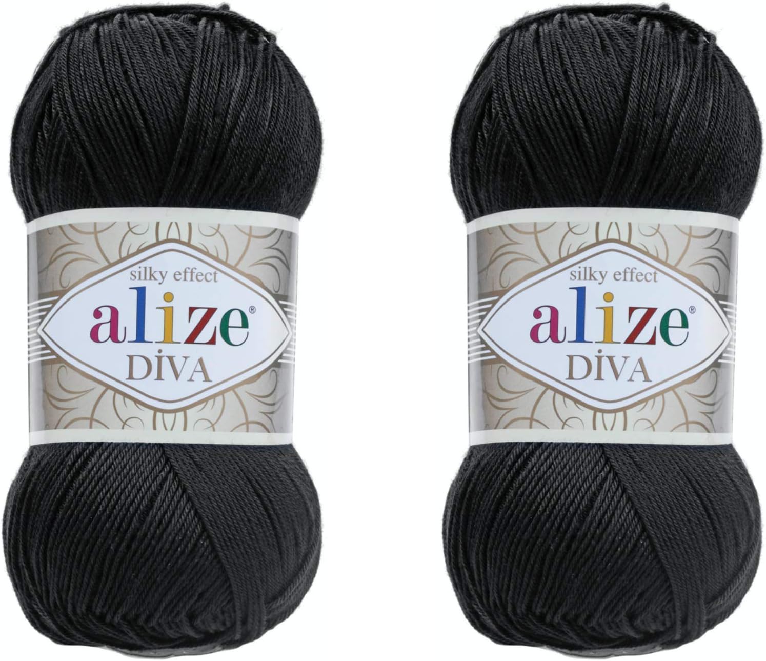 Amazon Com Alize Diva Yarn Hand Knitting Yarn 100 Microfiber Acrylic Yarn Alize Diva Silk Effect Thread Crochet Art Lace Craft Lot Of 2 Skeins 200gr 767 Yds 60 Black