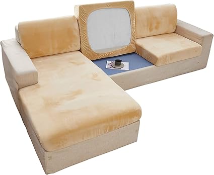 C N Copriseduta Divano In Velluto Federa Elasticizzata Copri Seduta Divano Copridivano Seduta Con Cuscini Separati Beige Amazon It Casa E Cucina