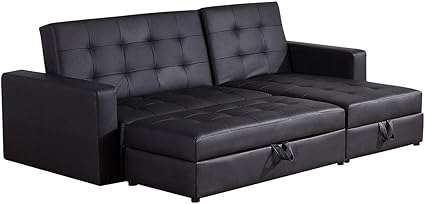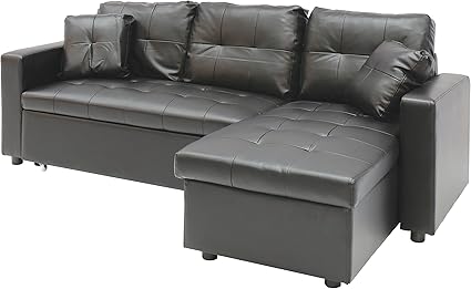 Homcom Divano Letto Angolare Con Poggiapiedi In Ecopelle Colore Nero Amazon It Casa E Cucina