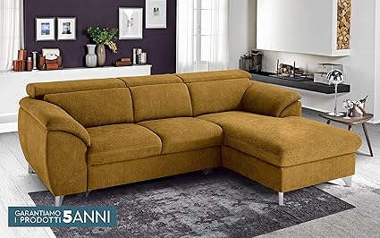 Dafne Italian Design Divano Letto Angolare 2 Posti Con Penisola A Destra Tessuto Mostarda Cm 303 X 185 X 88h Amazon It Casa E Cucina