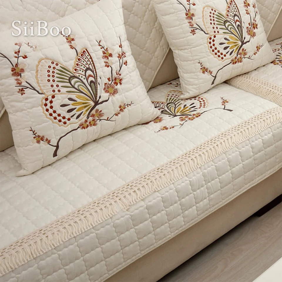 Pastorale Della Farfalla Ricamato Divano Copertura Fodere Di Cotone Canape Quilting Anti Slittamento Componibile Mobili Divano Copre Sp3601 Sofa Cover Slipcover Furniture Couch Coverscouch Cover Aliexpress