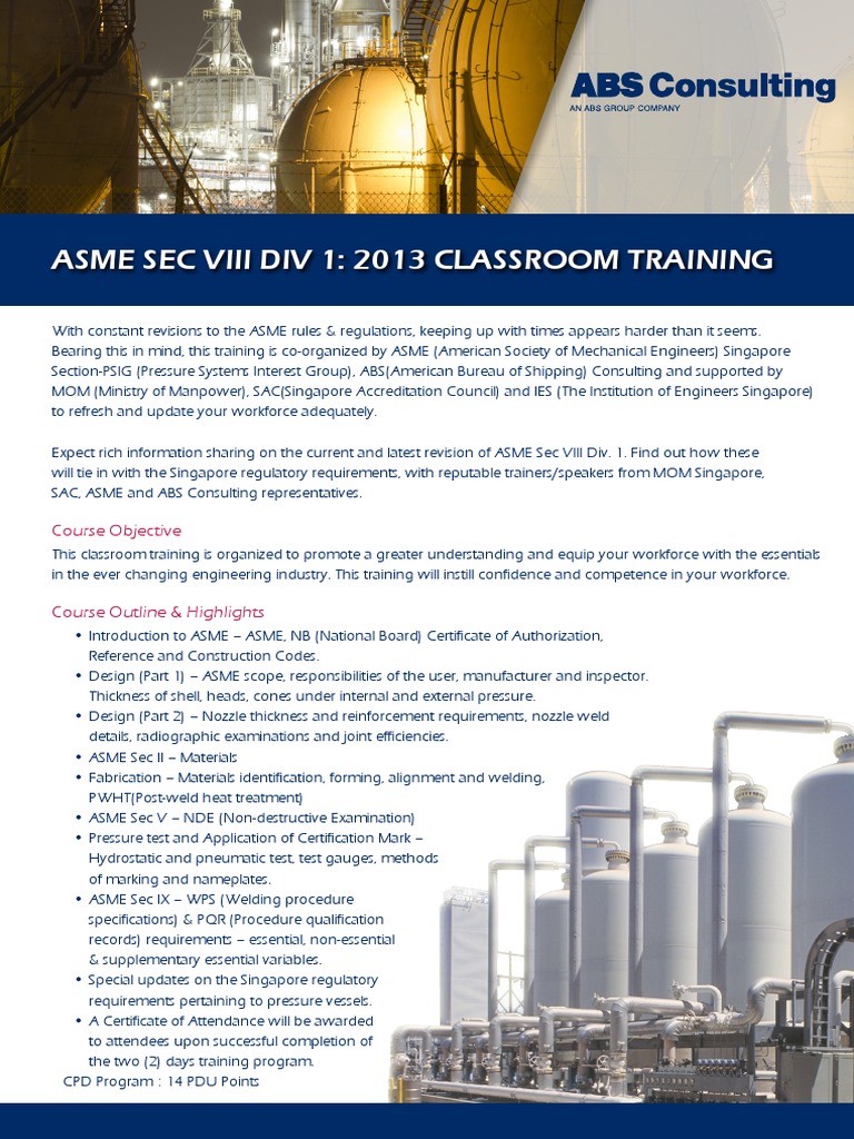 Course Asme Viii Div 1 Engineering Pipe Fluid Conveyance