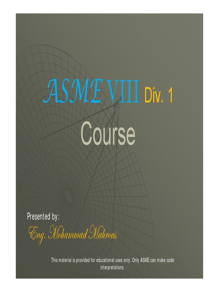 Course Asme Viii Div 1 Engineering Pipe Fluid Conveyance