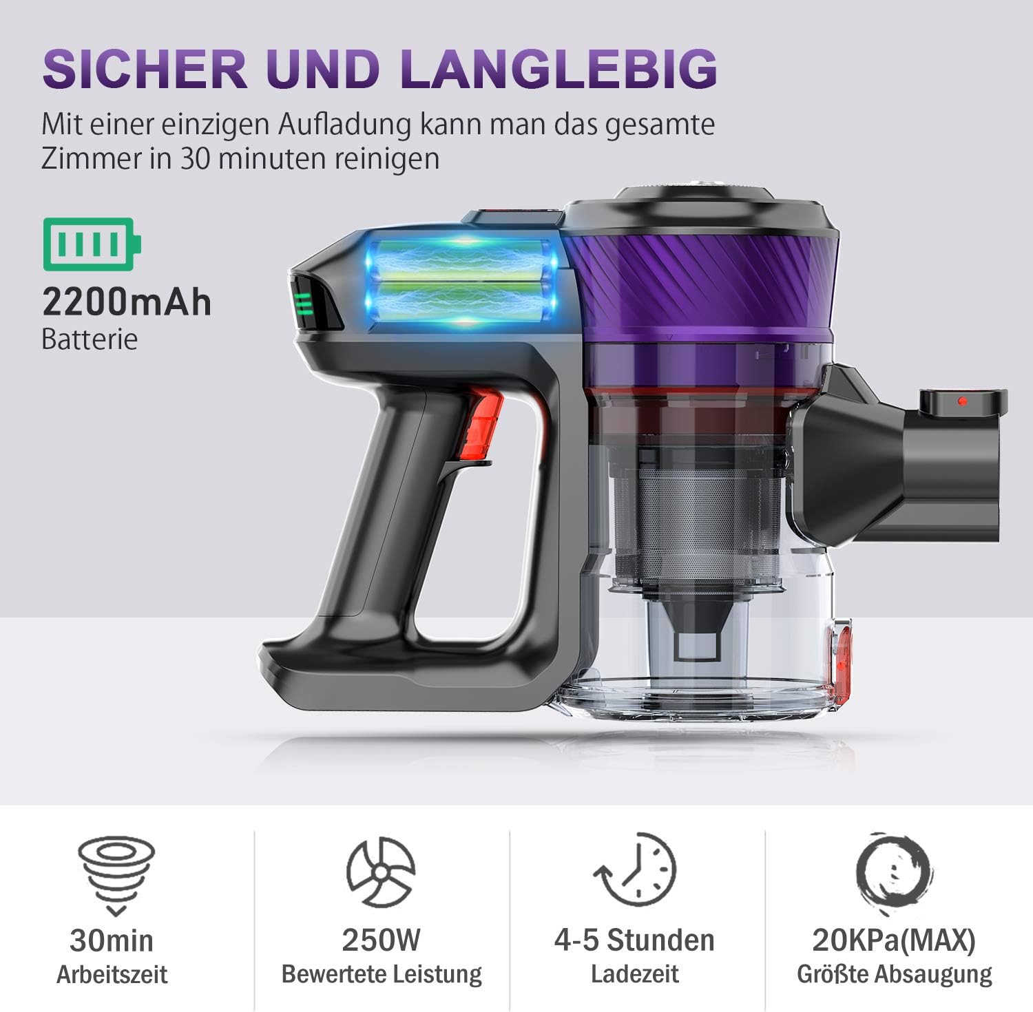 Aspirapolvere Senza Fili Potente 15000pa Scopa Elettrica Portatile Ricaricabile A Batteria Autonomia Per Pulizia Di Peli Animali Pavimenti Tappeti Divano Purple Purple