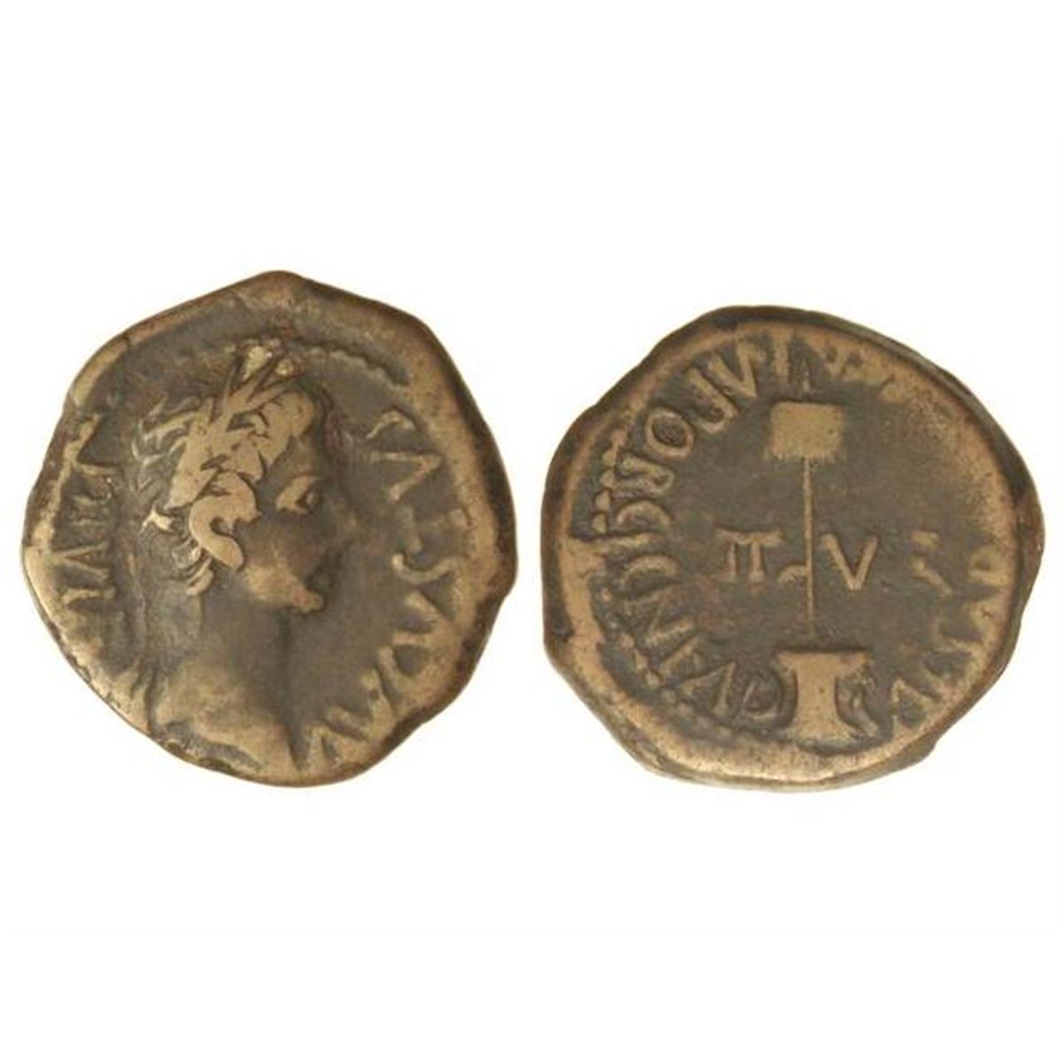 Obverse August Left Worn Remains Of Inscription Imp Caesar Divi F Avgvstvs Imp Xx Reverse Side Sc Surrounded By Inscription Pontif Maxim Tribvn Pot Xxxiiii Coin Ash Of Augustus Metal Bronze Diam