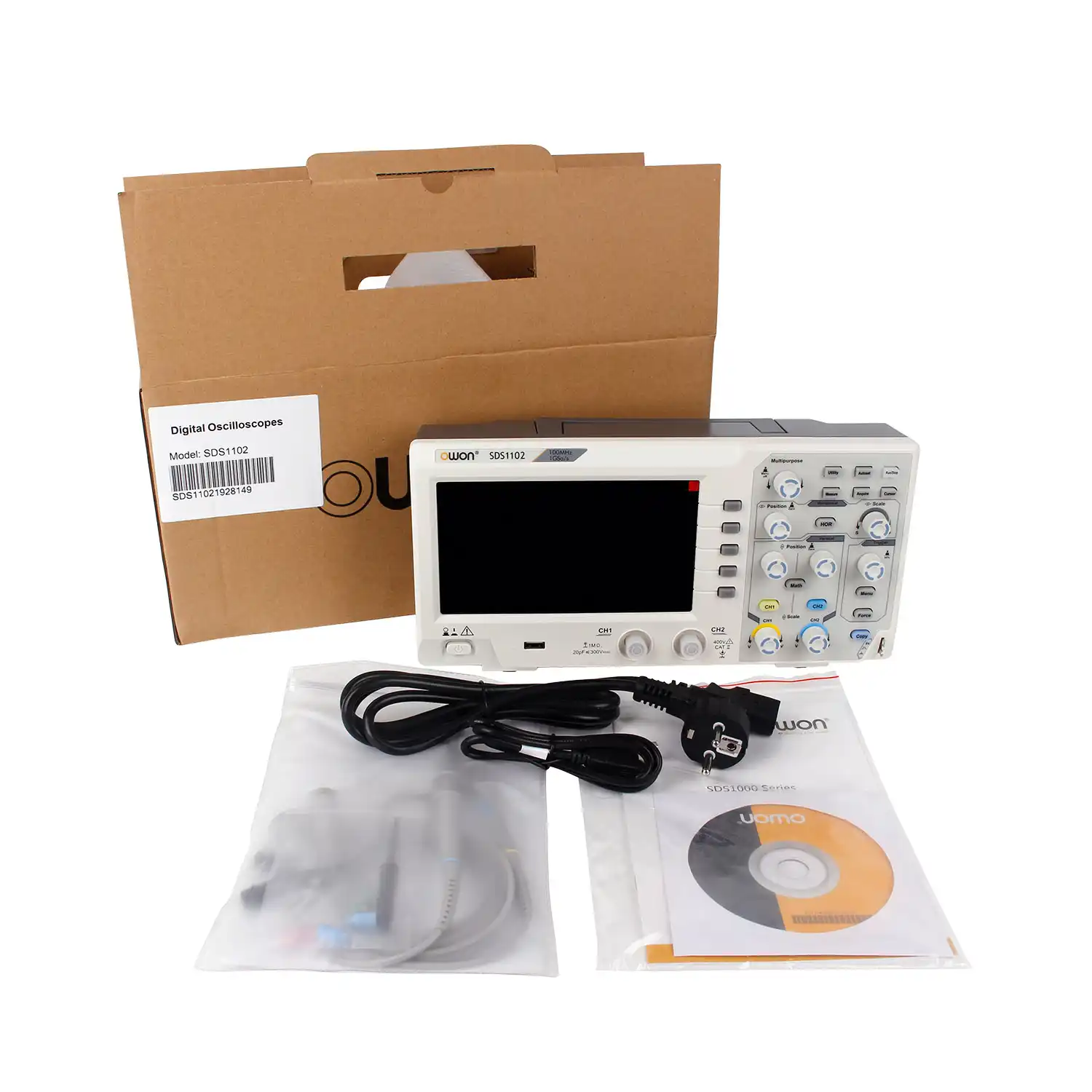 S Div Owon Sds1102 Osciloscopio Digital 8bits 2 Canales Ancho De Banda De 100mhz Tasa De Muestreo 1gs S Escala Horizontal Lcd A Color De 7 2ns Div 1000s