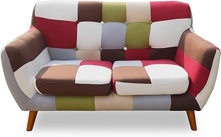 Divano Due Posti Rivestito In Cotone Con Base In Legno Stile Etnico Cm 160x80x53h Collyshop