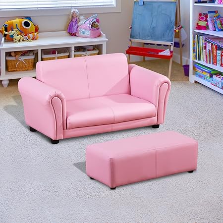 Homcom Mini Divano Per 2 Bambini Dai 3 Ai 7 Anni Con Poggiapiedi In Pvc E Legno Rosa 83x42x41cm Amazon It Giochi E Giocattoli