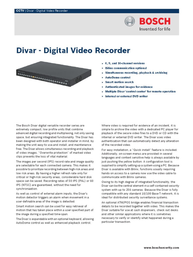 Divar Mr Digital Video Recorder Bosch Security Systems