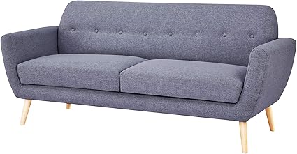 Metis Divano 3 Posti Stile Scandinavo In Tessuto Grigio Con Bottoni Decorativi