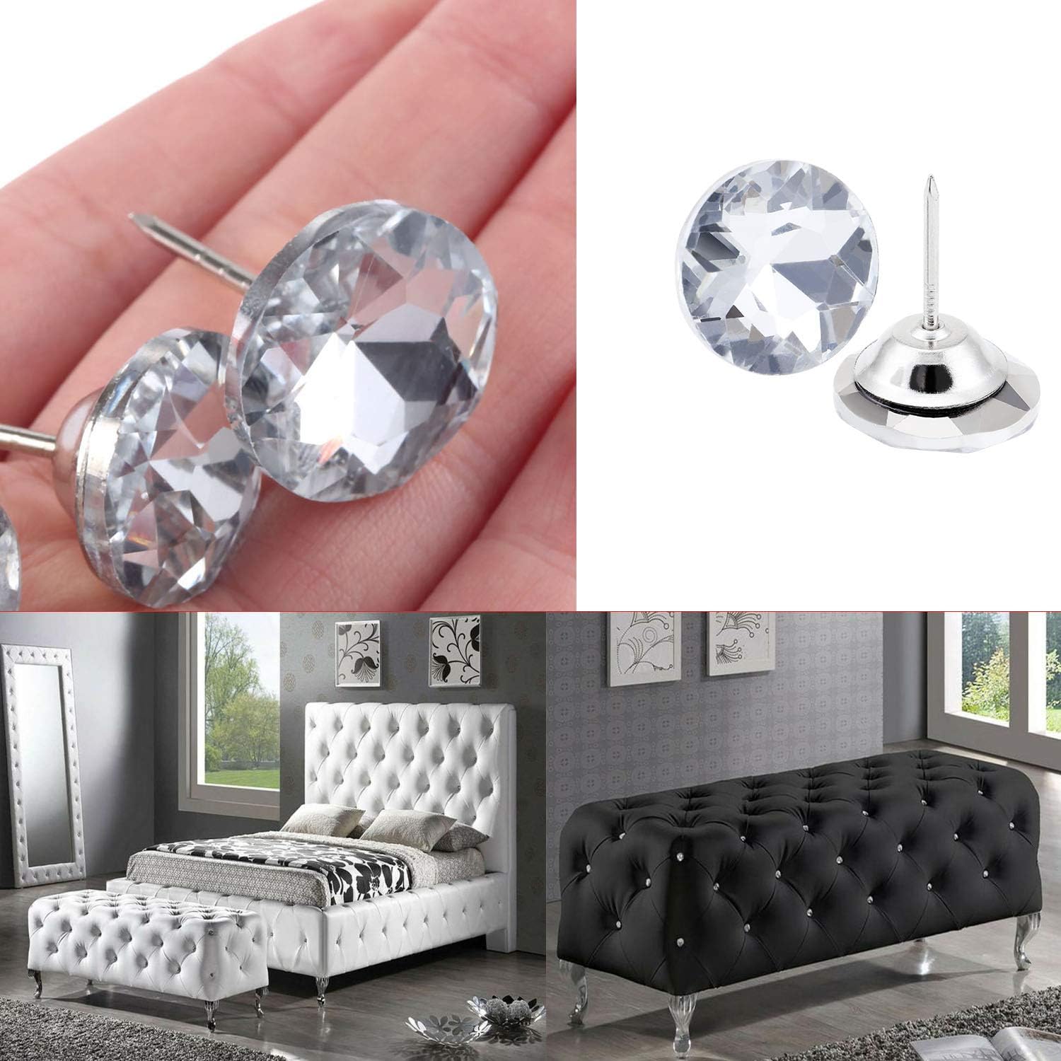 Wingfly Bottoni Cristallo Tappezzerie 50 Pezzi Chiodi Decorativi Per Divano Testiere Di Tappezzeria Artigianato Mobili Fai Da Te Decorazione 25mm Chiodi Ferramenta Fai Da Te