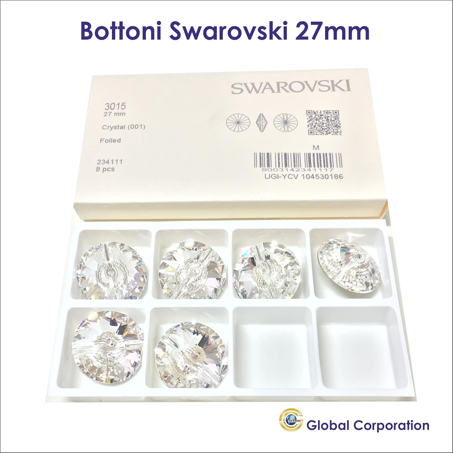 Bottoni Acrilico Cristallo Strass Rotondo Per Cucire 18 Mm Cnf 10 Pezzi Vestiti Divano Tappezzeria