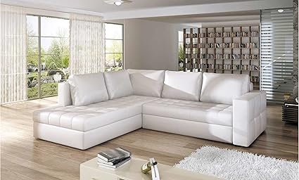 Justhome Camino Divano Angolare Divano Letto Finta Pelle Lxlxa 220x265x90 Cm Bianco Penisola A Sinistra Amazon It Casa E Cucina