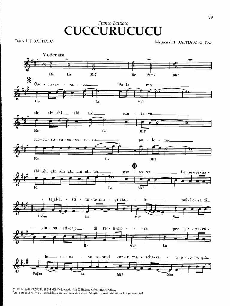 Accordi Cuccurucucu Paloma Franco Battiato 1000 Note