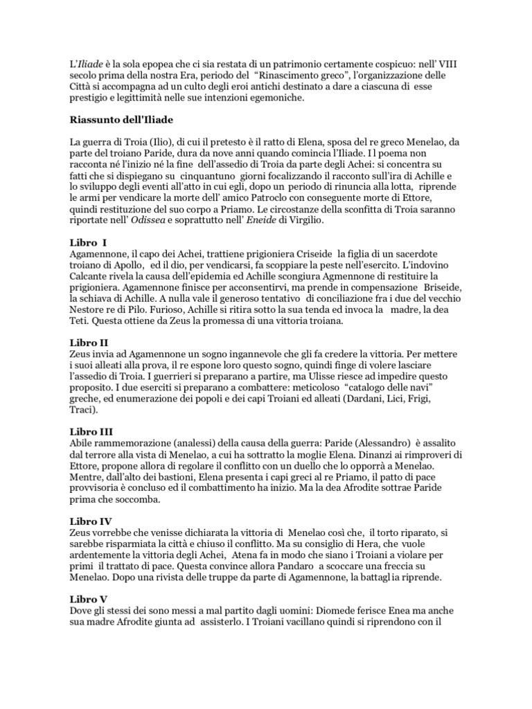 Iliade Riass E Commento