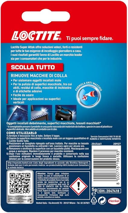 Loctite Scolla Tutto Rimuovi Colla In Tubetto Per Tutte Le Superfici Per Rimuovere Qualsiasi Cianoacrilato Colla Gel Colla Trasparente E Altre Colle 1x5g Il Pacchetto Puo Variare Amazon It Cancelleria E Prodotti Per