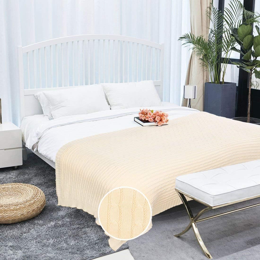 228 X 254 Cm Anche Per Divano A 3 Posti Elitehomecollection Color Avorio Coperta Per Letto Matrimoniale In Cotone Biancheria Da Letto Copriletti