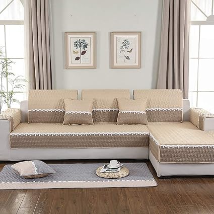 Lino Trapuntato Cuscino Divano Antiscivolo Fodera Per Divano Copridivano Per Sagomato A L Angolo Pelle E Reclinabile Divano Fodere Copridivani Divano Protezione Color Crema 1pc 90x180cm 35x71inch Amazon It Casa E Cucina