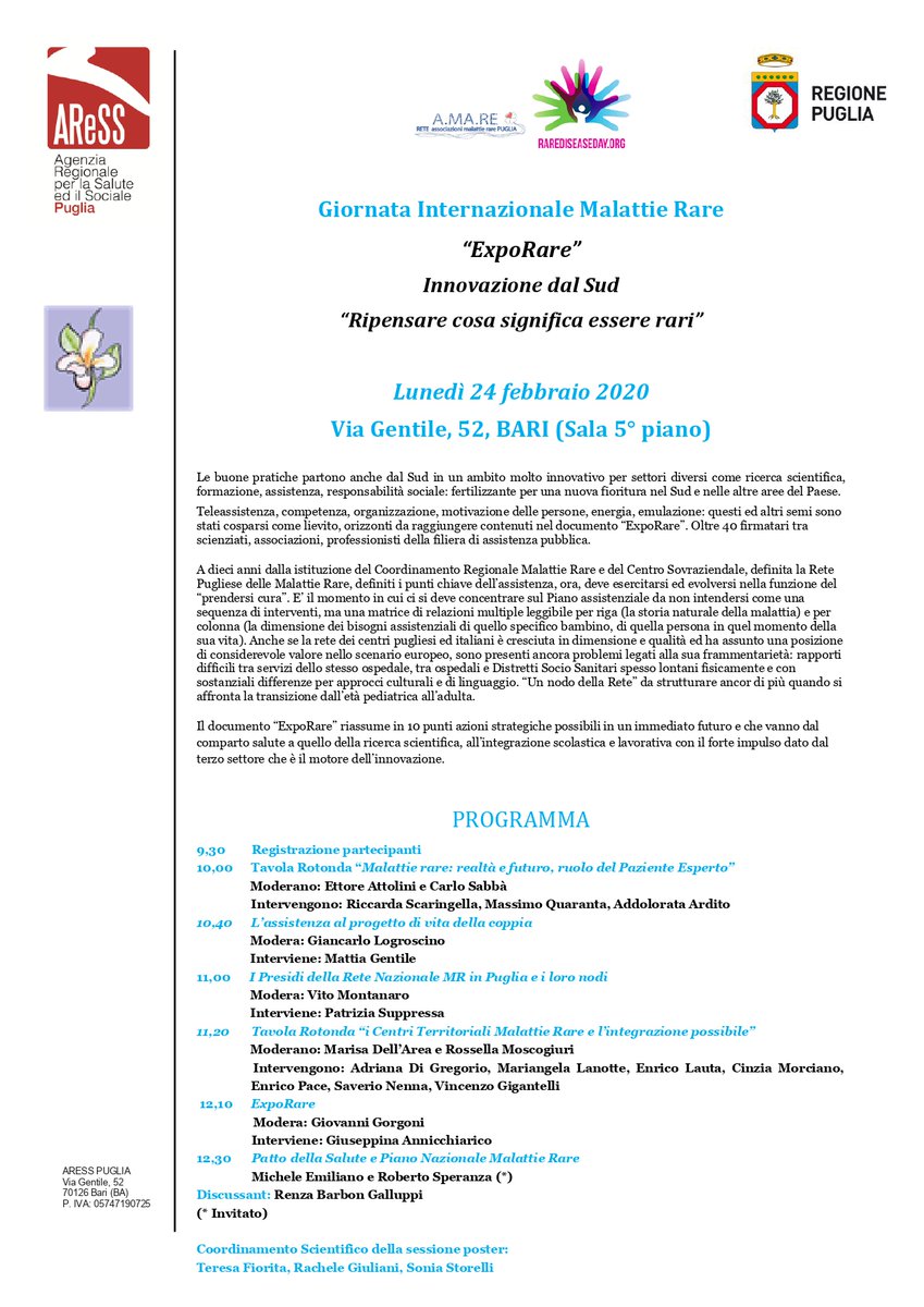 Tvmr On Twitter In Occasione Della Giornatamondialedellemalattierare Lunedi 24 Febbraio 2020 A Bari Presso L Aresspuglia Si Svolgera L Evento Exporare Innovazione Dal Sud Ripensare Cosa Significa Essere Rari Https T Co Tp0zpsfp6q