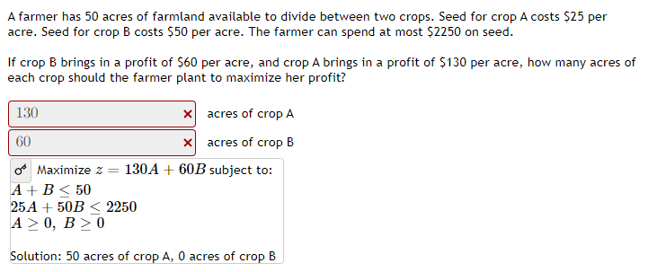 Solved A Farmer Has 50 Acres Of Farmland Available To Div Chegg Com