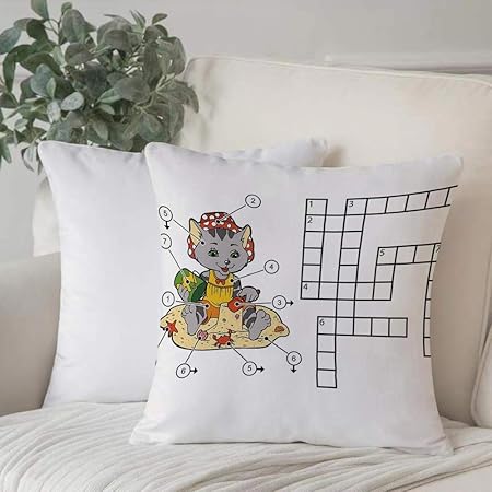 Poliestere Morbido Copricuscino Decorativo Ricerca Per Parole Cruciverba Per Bambini Simpatico Gatto Sull Di Federe Per Cuscini Di Per Salotto Divano Camera Da Letto Con Cerniera Invisibile 45x45cm Amazon It Casa E Cucina