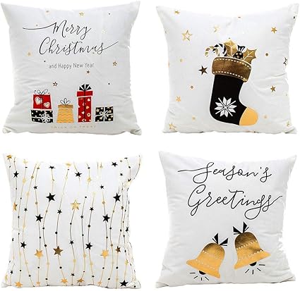 Gspirit Natale Cuscini Divano 4 Pack Christmas Serie Cotone Biancheria Decorativo Copricuscini Divano 45x45 Cm 1 Amazon It Casa E Cucina