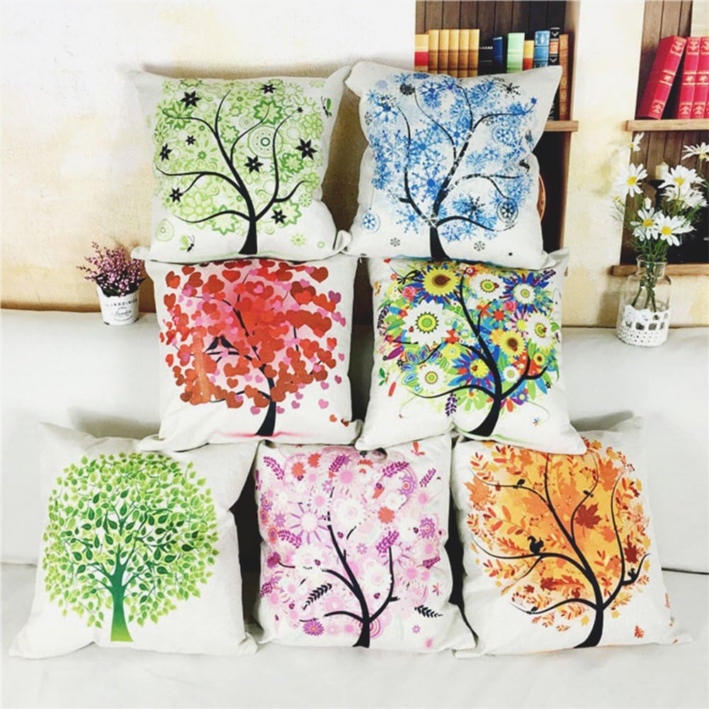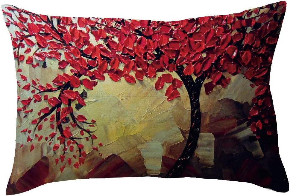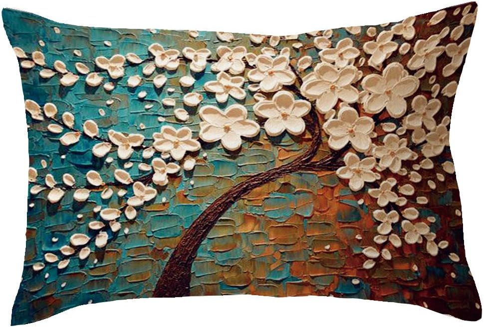 Bigboba Stile Vintage Dipinto Ad Olio Federe Cuscini Divano Alberi E Fiori Tridimensionali Motivo Di Lino Di Cotone D Cuscini Federe Cuscino Cuscini Decorativi