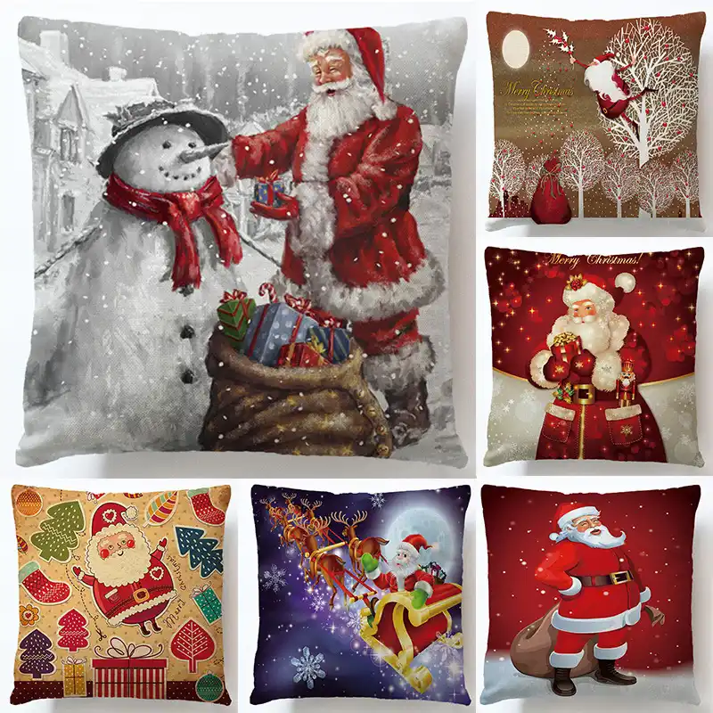 Natale Lino Federa Pupazzo Di Neve Babbo Natale Coperture Per Cuscini Cuscini Decorativi Per Il Sofa Divano Fodere Per Cuscini Decorazioni Per La Casa Fodera Per Cuscino Aliexpress