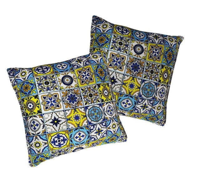 Coppia Federe Cuscini Divani 50x50 Cm Cotone Capri Vietri Giallo Blu Pillow Case Ebay